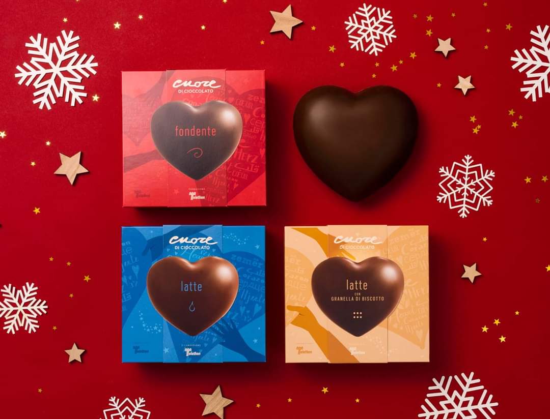 Con una donazione minima di 12 euro si potrà ricevere un “Cuore di cioccolato”: fondente, al latte o alla granella di biscotto.