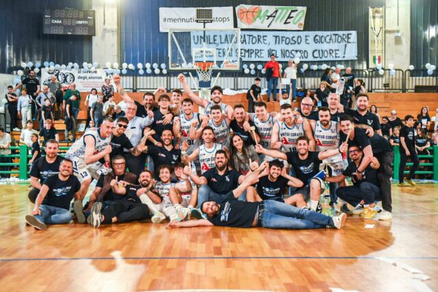 messapici non sono da meno dal perimetro ed impattano con le conclusioni di Vitucci ed Argentiero (47-47) prima di tornare avanti con un libero del solito Cvetanovic. Il PalaLosito è un’autentica bolgia, entrambe le tifoserie si fanno sentire ed i giocatori in campo avvertono la pressione, con i possessi che diventano sempre più pesanti. D’Introno spinge Corato ma gli ospiti sono sempre lì e provano la fuga buona con la tripla di Gualano (51-53). Ancora il solito D’Introno fa esplodere il palazzetto con la bomba del 54-53 ed il canestro di Mazzilli riporta Corato in vantaggio sul 56-53. Nel finale di match, non adatto ai deboli di cuore, un Liso gigantesco (top scorer con 23 punti), spinge i suoi dalla lunetta ma è Ceglie ad 8 secondi dal termine ad avere il possesso del match e della promozione sul 58-56. I brindisini però lo sciupano e Corato ancora con Liso segna dalla lunetta, vince il match 59-56 e può esultare, pazza di gioia, assieme a tutto il suo pubblico. Appuntamento a domenica 11 maggio in quel di Ceglie: la Virtus, che ha chiuso la sua prima stagione da esordiente in serie D al primo posto, ha già stravinto il suo campionato e scritto capitoli incredibili e impensabili della sua storia. Domenica, a prescindere dal risultato, ne scriverà un altro. Forse il più bello.