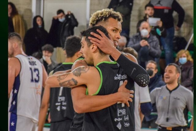 Bari quasi subito accorcia fino alle due lunghezze, ma l’Adriatica Industriale con il tandem Ouandie (24 punti) e Tomasello approfitta di un momento di appannamento ospite, ma non fino in fondo (complice anche l’assenza contemporanea sul parquet di Meistas e Rodriguez). Neroverdi anche sul +12 ma non chiudono il match a più riprese, i biancorossi approfittano di un momento confuso del match per accorciare (68-59 al 36′). Corato sembra in controllo ma da qui iniziano 90″ complicatissimi, in cui Corato si fa del male da sola a più riprese, soffrendo la Press Zone ospite con palle perse a ripetizione. Ravelli a 18″ dalla fine fa -1, poi Del Tedesco dopo il fallo sistematico fa 2/2 con freddezza glaciale e Bari per fortuna non riesce a realizzare. Finale dal PalaLosito: Corato 72, Bari 67.