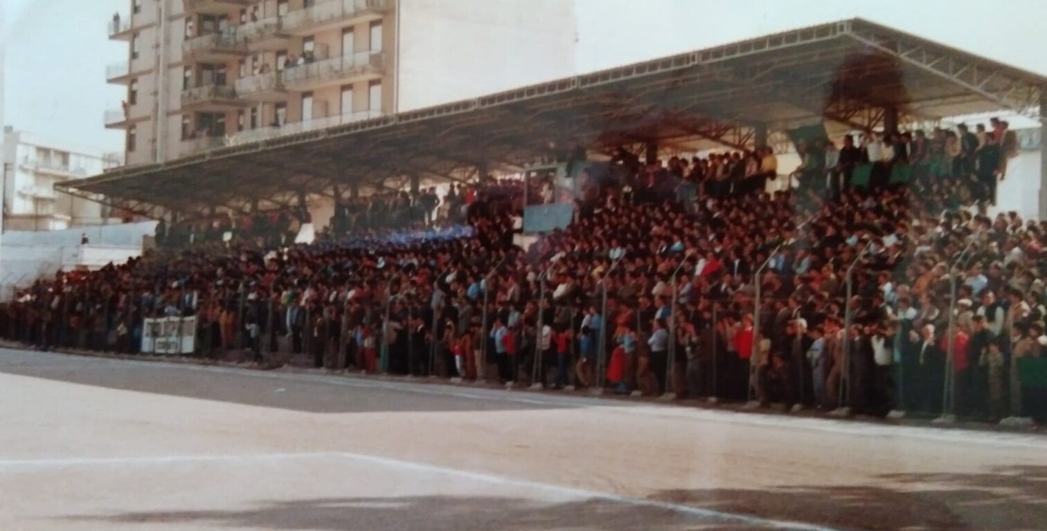 Il piccolo campo del Presidente Bellomo, famoso poi a “Mai dire Gol” con il Monopoli, è assiepato in ogni ordine di posto.
