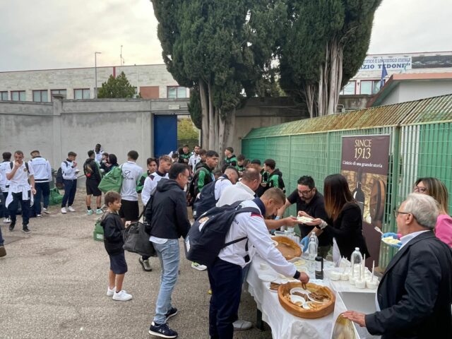 E pertanto, calciatori, dirigenti, addetti ai lavori, arbitri, a fine di ogni gara, troveranno i più disparati prodotti di aziende locali, dall’olio, al vino, caseari, taralli, etc. a seconda anche della stagionalità.