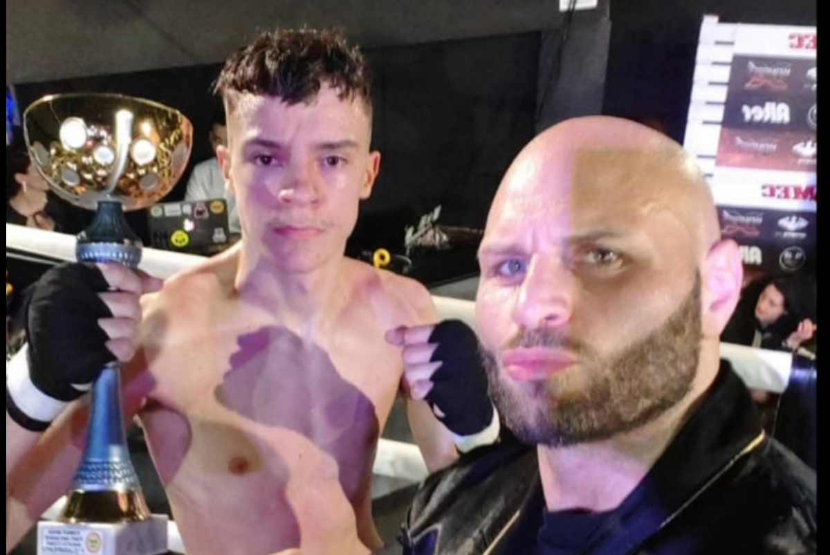 I cuccioli Daniele Scarigella e Mattia Mazzilli hanno dato il via al combattimento degli atleti coratini con un demo di kick light, seguito da un match avvincente di Kickboxing K1 Rules, contatto pieno, con il campione Flavio Bertini nella categoria junior, 60 kg, che ha portato a casa il pareggio.