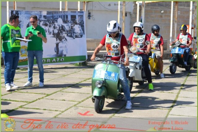 È questo il succo de “le vie del grano”, manifestazione organizzata dall’Asd Vespa Club di Corato, 2^ prova del campionato Interregionale di Regolarità di Puglia e Basilicata, con il patrocinio del Comune di Corato, di Poggiorsini e Parco Alta Murgia.