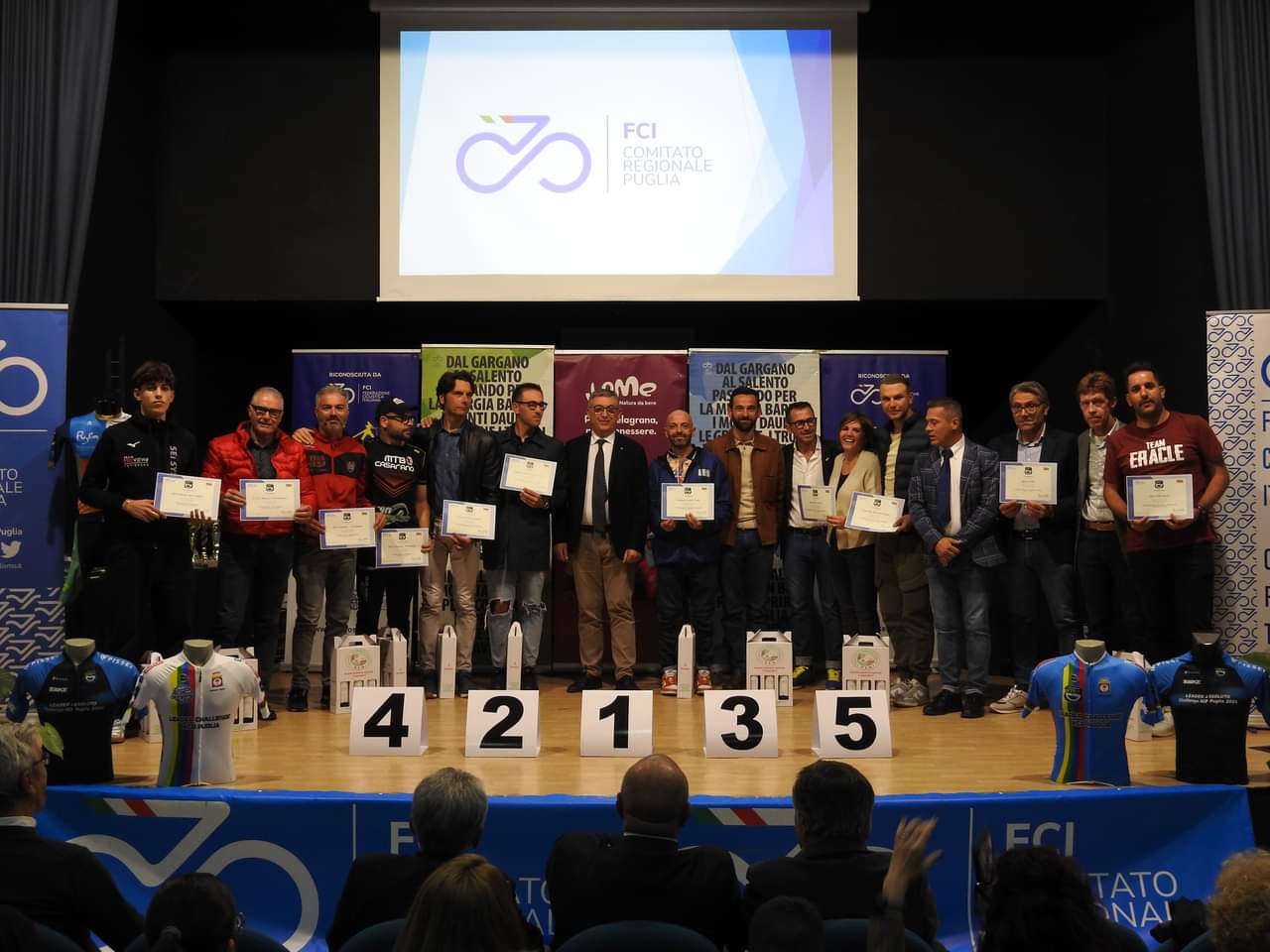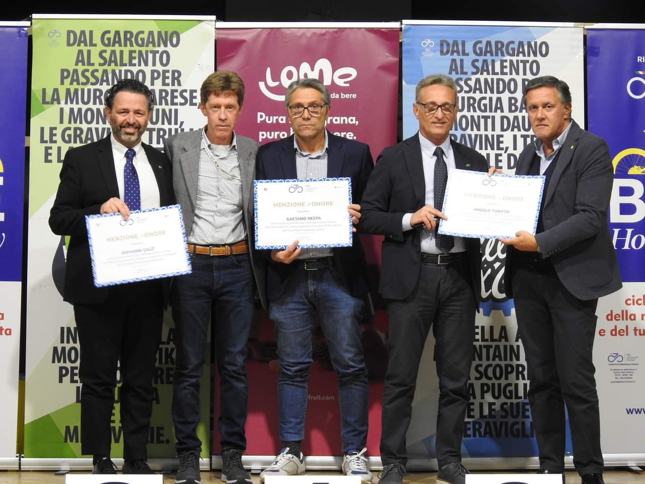 Per l’occasione sono state consegnate le Menzioni d’Onore della Federazione Ciclistica Italiana a Angelo Turitto (delegato FCI Taranto), Gaetano Nesta (presidente del comitato provinciale FCI Bari-Bat), Vanni Calò (delegato provinciale FCI Brindisi), Sergio Quarta (presidente del comitato provinciale FCI Lecce), Davide Catalano (delegato provinciale FCI Foggia) e ad Anthony De Amicis (ex delegato provinciale FCI Taranto) come riconoscimento per l’attività svolta in favore del movimento ciclistico italiano.