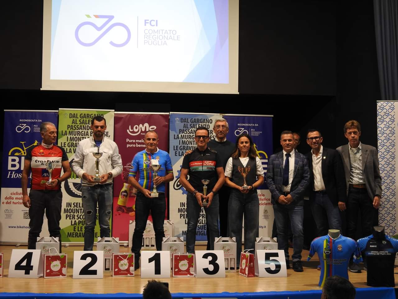 Presenti nel corso della cerimonia anche Francesco De Lorenzo (tecnico regionale fuoristrada FCI Puglia) e Giovanni Chierico (coordinatore delle rappresentative regionali FCI Puglia strada e pista).