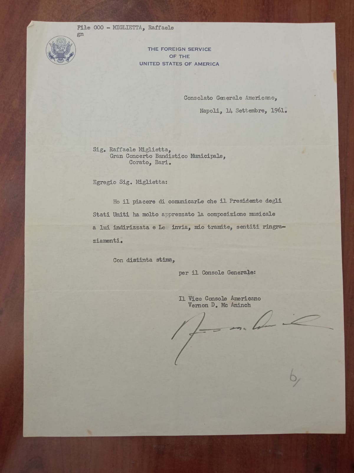 La vita artistica e musicale del Maestro Miglietta è sicuramente ai più nota, tuttavia grazie all’interesse dei parenti del Maestro, in special modo grazie ad Amalia e Chiara Miglietta, sono partiti i lavori di ricerca per ricostruire il percorso biografico dell’ultimo grande Maestro della banda locale.