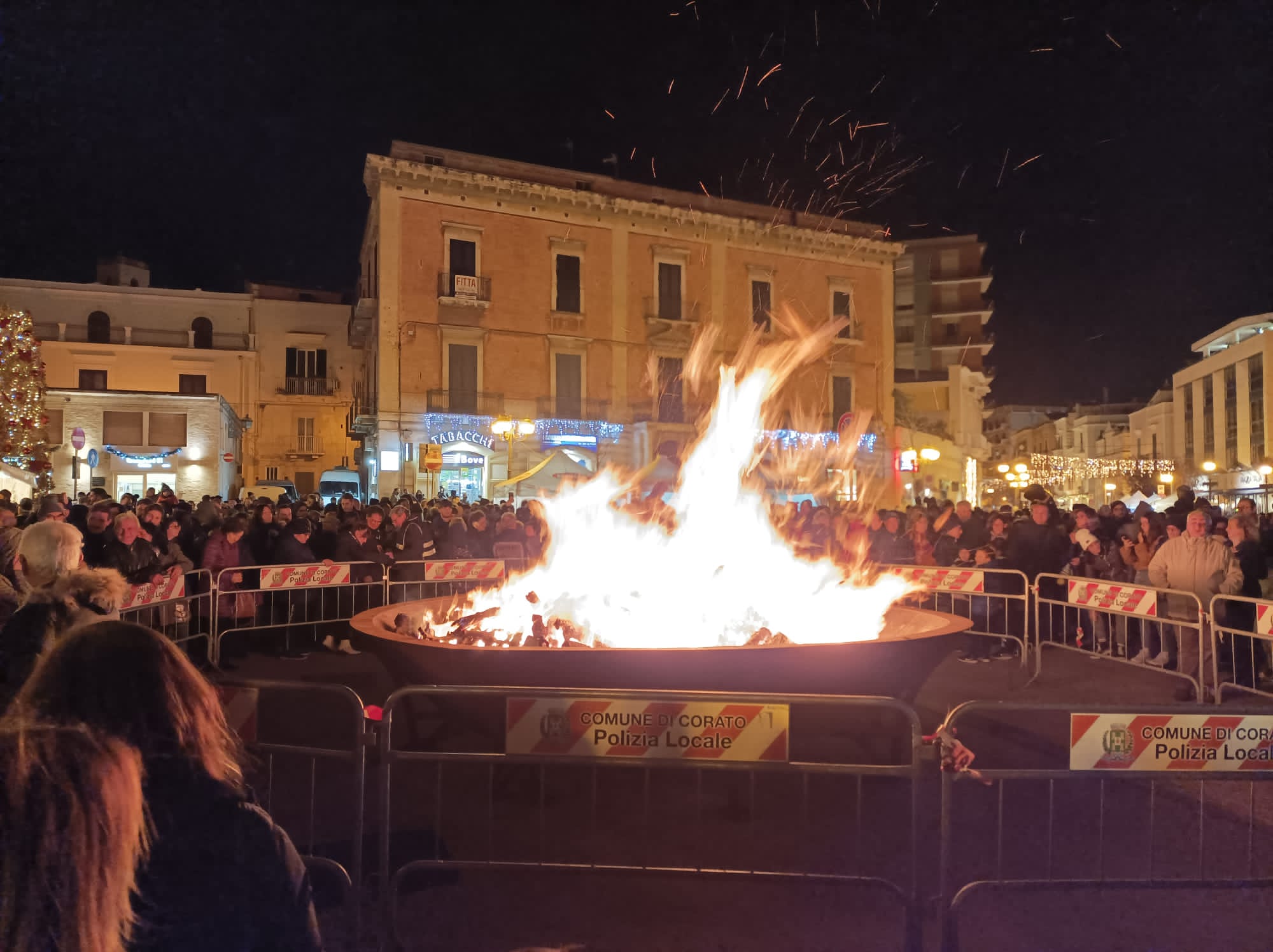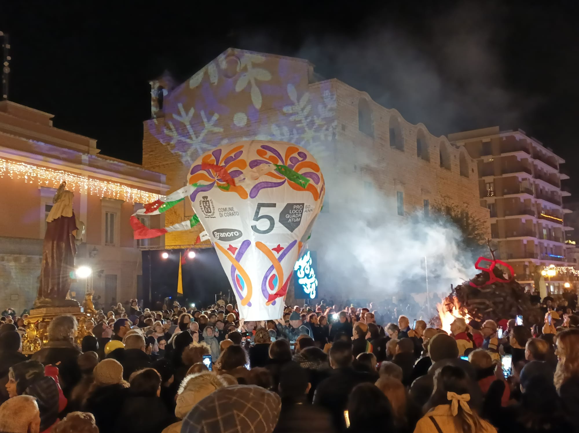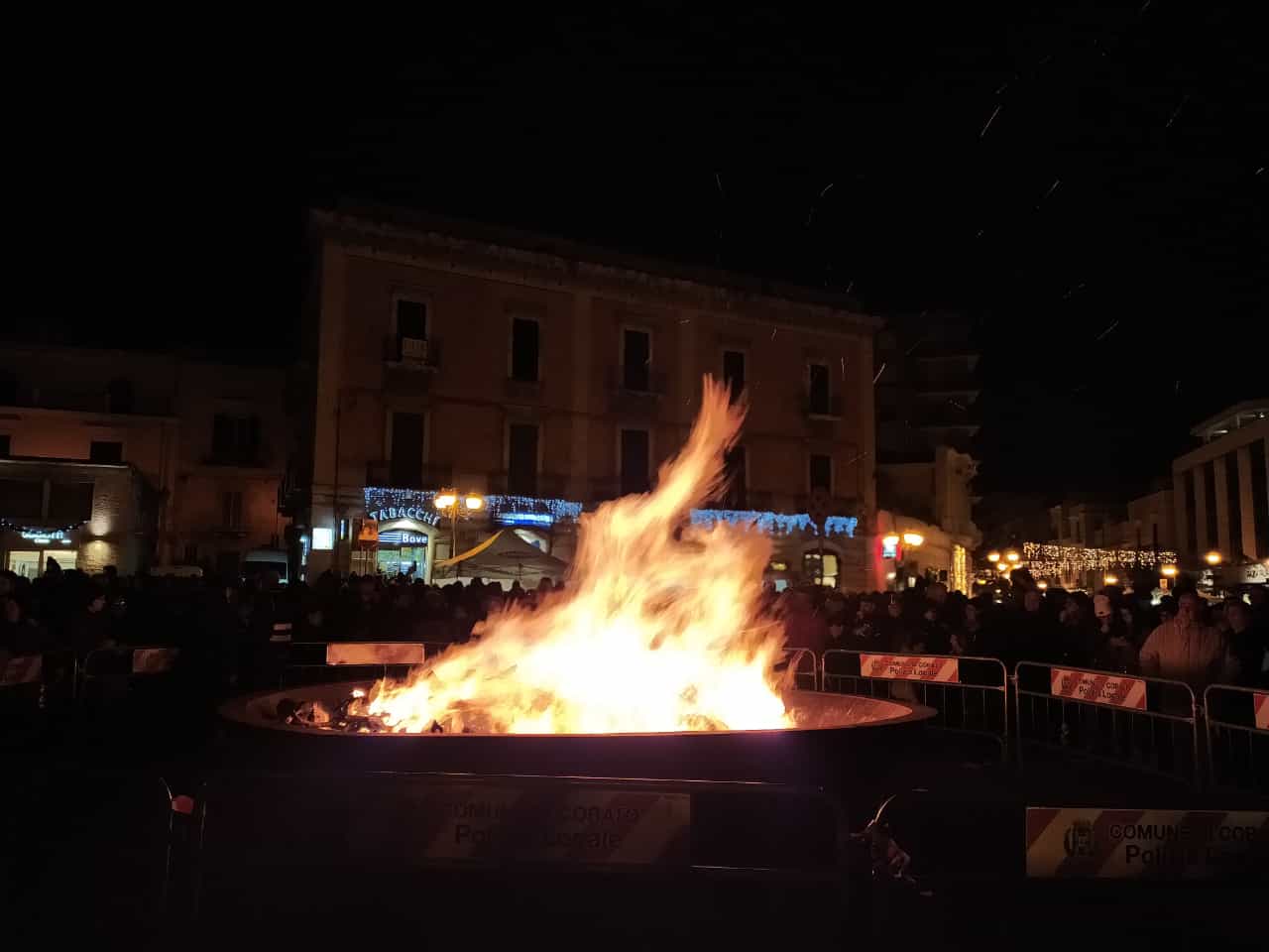 La Pro Loco Quadratum di Corato apre i festeggiamenti dei suoi 50 anni con la prima edizione de “ La Coratina in festa” che domenica 11 dicembre e lunedì 12 in piazza Cesare Battisti e corso Mazzini ha visto la partecipazione di aziende coratine e locali per valorizzare la nostra monocultivar coratina e i prodotti tipici locali. L’Assessorato alle attività produttive del Comune di Corato e la Pro Loco hanno inaugurato una manifestazione per la quale non devono mancare la speranza e la volontà che si consolidi nel carnet della Pro Loco e della tradizione cittadina. Degustazioni, concerti, laboratori e giochi per bambini sono stati realizzati a partire da domenica mattina mntre lunedì sera folklore, fede, tradizione hanno dato vita alla 50esima edizione della Jo’ a Jo’, il falò di Santa Lucia che apre le festività natalizie. Dopo la Santa Messa e la preghiera a Santa Lucia in Chiesa Matrice, la fiaccolata e la processione della Santa si sono concluse in Piazza Cesare Battisti, davanti al grande braciere cittadino colmo di legna che don Gino De Palma ha benedetto. Non è mancato il lancio del pallone aerostatico, dedicato a Santa Lucia, alla Pro Loco, all’Amministrazione Comunale, alla Regione Puglia, alla Granoro, al cav.Divella. Il presidente della Pro Loco, Gerardo Giuseppe Strippoli e il Sindaco Corrado De Benedittis hanno acceso il falò con la volontà di continuare a lavorare per la Città, con la speranza che la luce e la fiducia prevalgano sulle tenebre. Successivamente ha avuto luogo il grande concerto di Eugenio Bennato che ha presentato il suo ultimo lavoro, Vento Popolare, con i Taranta Power. Prima che la musica conquistasse la piazza gremita e gli stand affollati, Gerardo Strippoli ha ringraziato tutti coloro che hanno reso possibile le manifestazioni, a partire dall’Amministrazione Comunale, alla Regione Puglia, alla Granoro, agli organi di Polizia, ai Carabinieri, alle Guardie Ambientali, alla Sicurezza, a don Gino De Palma, a PugliaAudio, a Vito Sforza e figli. Ha ricordato chi in questi 50 anni ha portato avanti la Pro Loco fino a questo importante compleanno e che ha profuso il suo amore per il territorio, come il Sindaco, il quale ha evidenziato che si sta dimostrando che la città è viva e parla del suo territorio e dà il benvenuto anche a chi arriva da fuori. Egli ha inoltre sottolineato che la Pro Loco è custode della tradizione della Jo’ a Jo’ che è simbolo di “calore, speranza di pace che illumini gli orizzonti in un contesto internazionale difficile di cui viviamo le ripercussioni locali come la crisi” “Eugenio Bennato è un artista di grande spessore, una voce autorevole che ha recuperato le tradizioni della musica meridionale in un percorso di contaminazioni culturali proiettato alle nuove generazioni. Corato è la città della Monocultivar coratina, fa parte di un importante Parco dell’ Alta Murgia : terra di grande lavoro!” . Il Sindaco ha concluso auspicando la creazione di buone relazioni di pace a partire dal nostro piccolo fino al mondo intero. Il concerto ha riempito la piazza fino a tarda sera, con gli sguardi alle faville del falò che portavano le belle speranze verso il cielo, mentre le teste ondeggiavano e i corpi si dondolavano sulle note della musica di Bennato: “Lucia e la luna” è stato il brano che l’ artista ha particolarmente dedicato alla serata e al pubblico che finalmente inizia a sentire l’aria di festa in città.