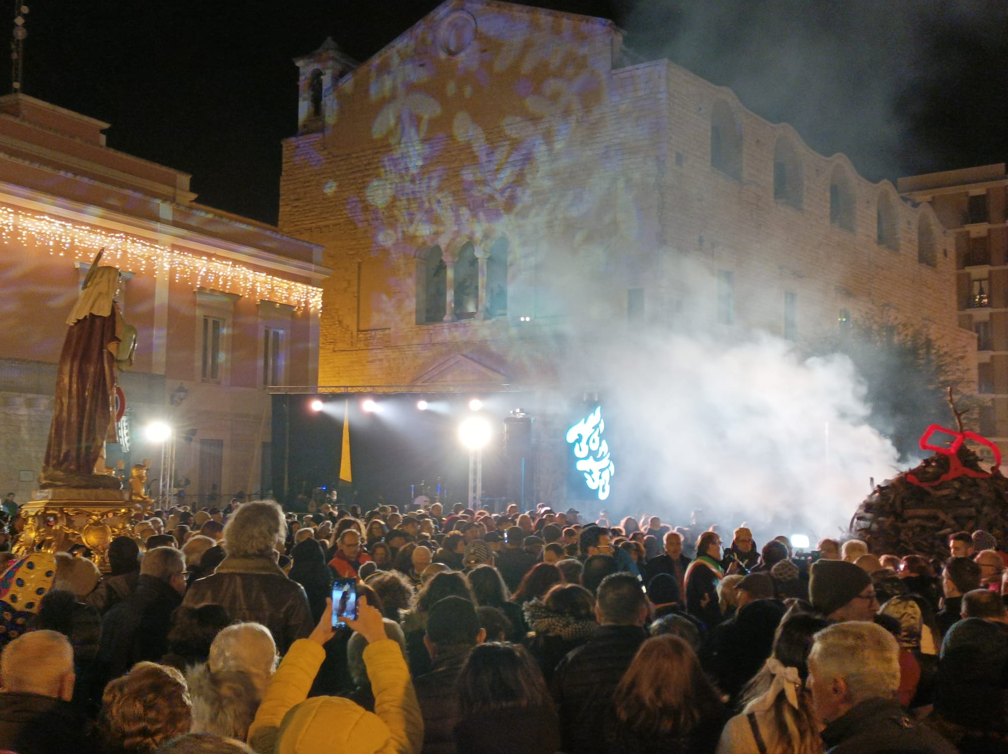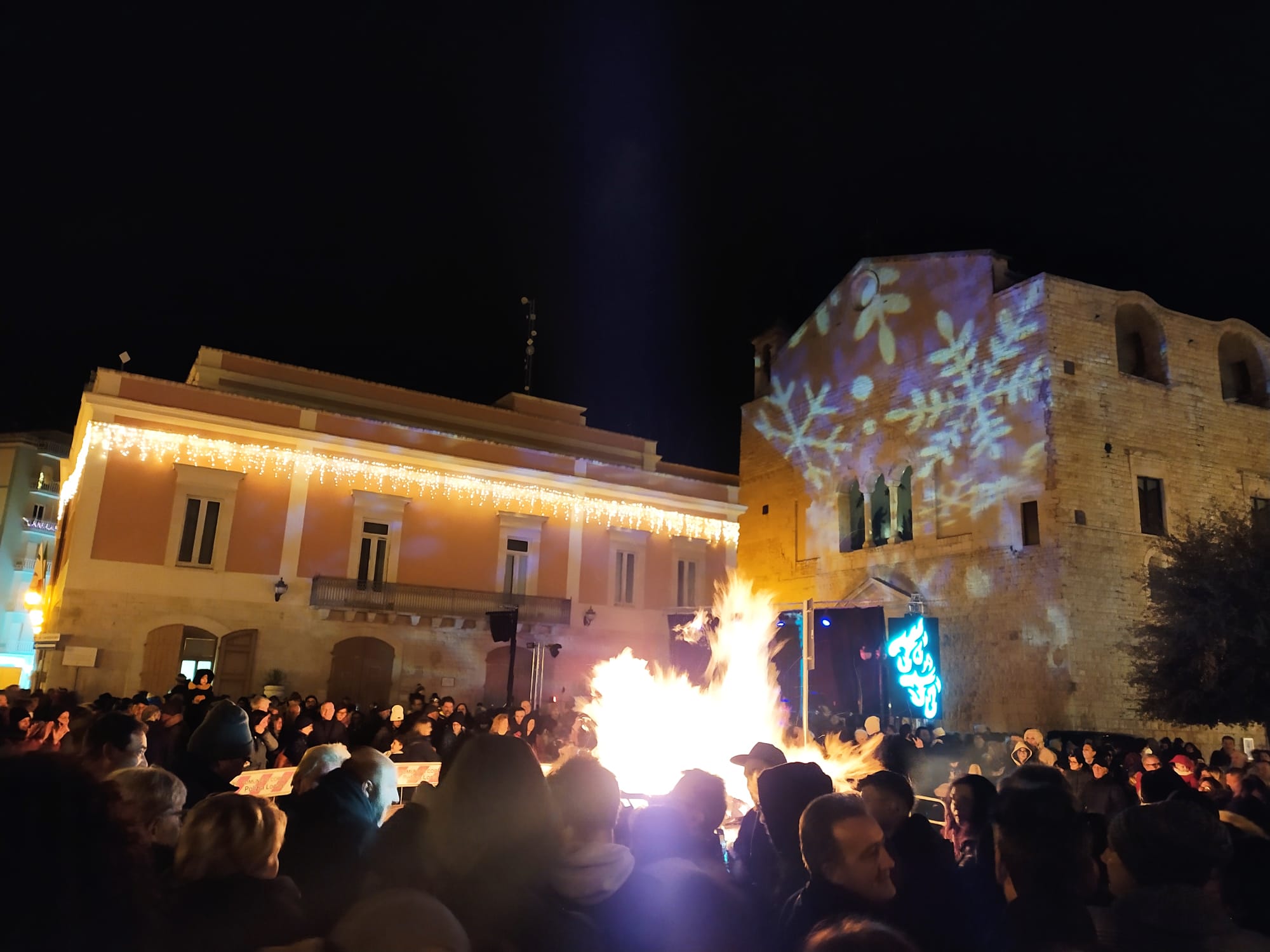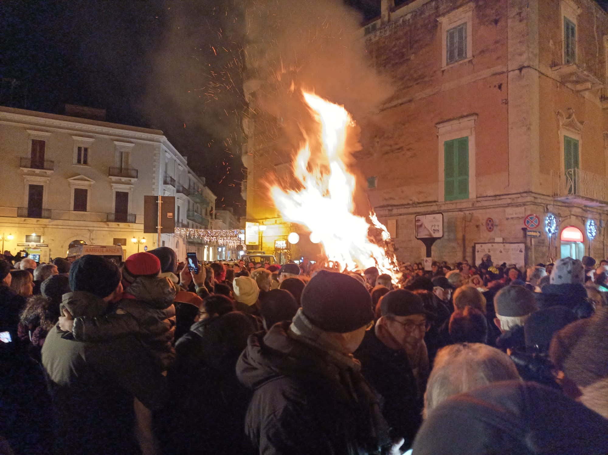 La Pro Loco Quadratum di Corato apre i festeggiamenti dei suoi 50 anni con la prima edizione de “ La Coratina in festa” che domenica 11 dicembre e lunedì 12 in piazza Cesare Battisti e corso Mazzini ha visto la partecipazione di aziende coratine e locali per valorizzare la nostra monocultivar coratina e i prodotti tipici locali. L’Assessorato alle attività produttive del Comune di Corato e la Pro Loco hanno inaugurato una manifestazione per la quale non devono mancare la speranza e la volontà che si consolidi nel carnet della Pro Loco e della tradizione cittadina. Degustazioni, concerti, laboratori e giochi per bambini sono stati realizzati a partire da domenica mattina mntre lunedì sera folklore, fede, tradizione hanno dato vita alla 50esima edizione della Jo’ a Jo’, il falò di Santa Lucia che apre le festività natalizie. Dopo la Santa Messa e la preghiera a Santa Lucia in Chiesa Matrice, la fiaccolata e la processione della Santa si sono concluse in Piazza Cesare Battisti, davanti al grande braciere cittadino colmo di legna che don Gino De Palma ha benedetto. Non è mancato il lancio del pallone aerostatico, dedicato a Santa Lucia, alla Pro Loco, all’Amministrazione Comunale, alla Regione Puglia, alla Granoro, al cav.Divella. Il presidente della Pro Loco, Gerardo Giuseppe Strippoli e il Sindaco Corrado De Benedittis hanno acceso il falò con la volontà di continuare a lavorare per la Città, con la speranza che la luce e la fiducia prevalgano sulle tenebre. Successivamente ha avuto luogo il grande concerto di Eugenio Bennato che ha presentato il suo ultimo lavoro, Vento Popolare, con i Taranta Power. Prima che la musica conquistasse la piazza gremita e gli stand affollati, Gerardo Strippoli ha ringraziato tutti coloro che hanno reso possibile le manifestazioni, a partire dall’Amministrazione Comunale, alla Regione Puglia, alla Granoro, agli organi di Polizia, ai Carabinieri, alle Guardie Ambientali, alla Sicurezza, a don Gino De Palma, a PugliaAudio, a Vito Sforza e figli. Ha ricordato chi in questi 50 anni ha portato avanti la Pro Loco fino a questo importante compleanno e che ha profuso il suo amore per il territorio, come il Sindaco, il quale ha evidenziato che si sta dimostrando che la città è viva e parla del suo territorio e dà il benvenuto anche a chi arriva da fuori. Egli ha inoltre sottolineato che la Pro Loco è custode della tradizione della Jo’ a Jo’ che è simbolo di “calore, speranza di pace che illumini gli orizzonti in un contesto internazionale difficile di cui viviamo le ripercussioni locali come la crisi” “Eugenio Bennato è un artista di grande spessore, una voce autorevole che ha recuperato le tradizioni della musica meridionale in un percorso di contaminazioni culturali proiettato alle nuove generazioni. Corato è la città della Monocultivar coratina, fa parte di un importante Parco dell’ Alta Murgia : terra di grande lavoro!” . Il Sindaco ha concluso auspicando la creazione di buone relazioni di pace a partire dal nostro piccolo fino al mondo intero. Il concerto ha riempito la piazza fino a tarda sera, con gli sguardi alle faville del falò che portavano le belle speranze verso il cielo, mentre le teste ondeggiavano e i corpi si dondolavano sulle note della musica di Bennato: “Lucia e la luna” è stato il brano che l’ artista ha particolarmente dedicato alla serata e al pubblico che finalmente inizia a sentire l’aria di festa in città.