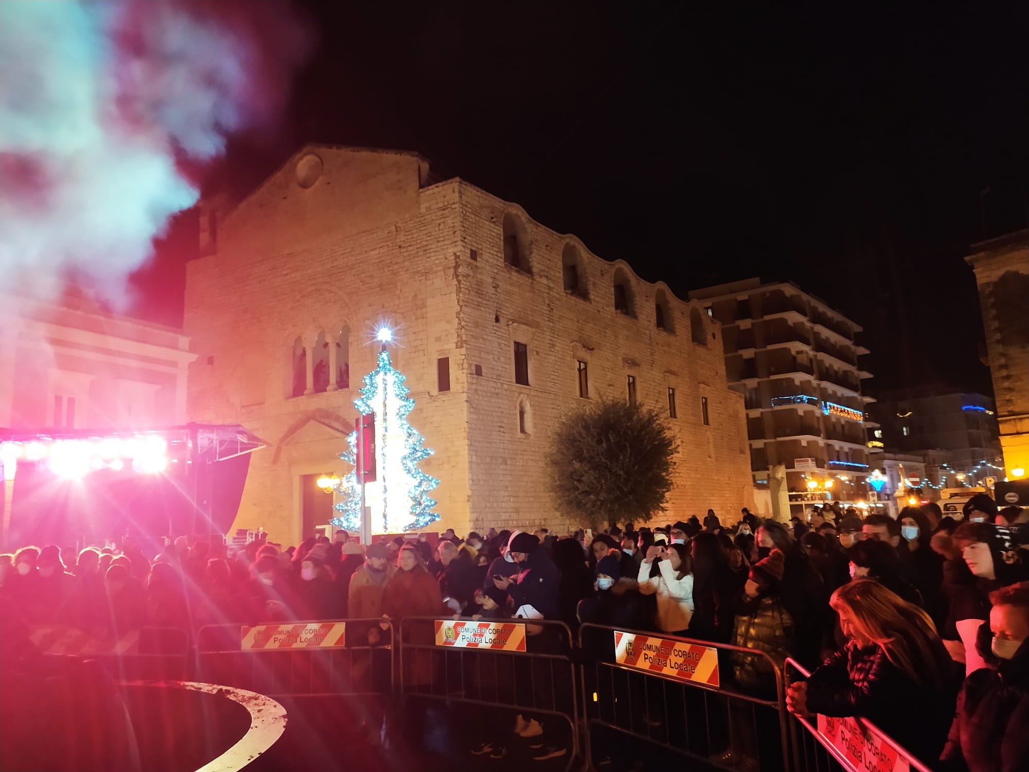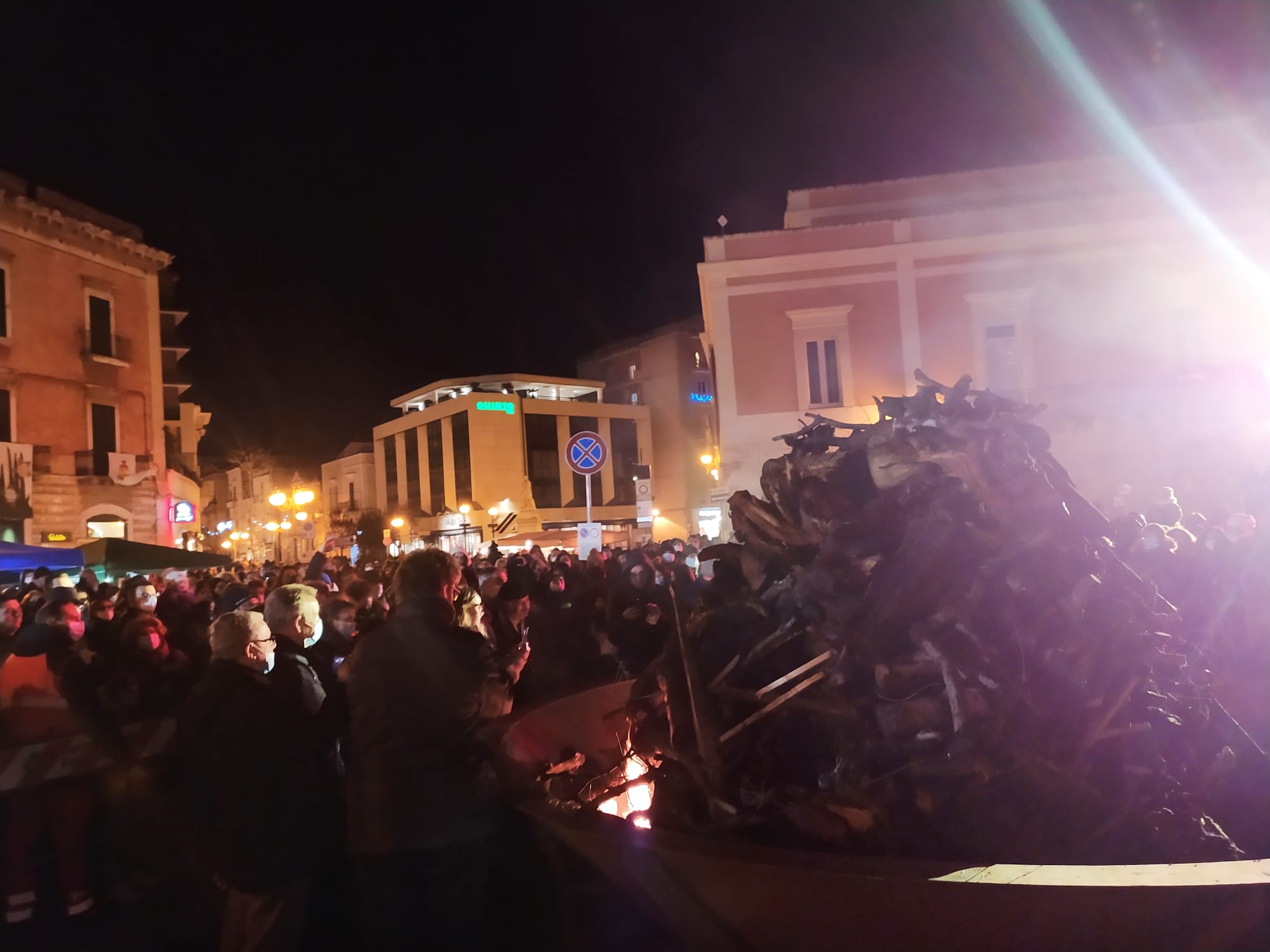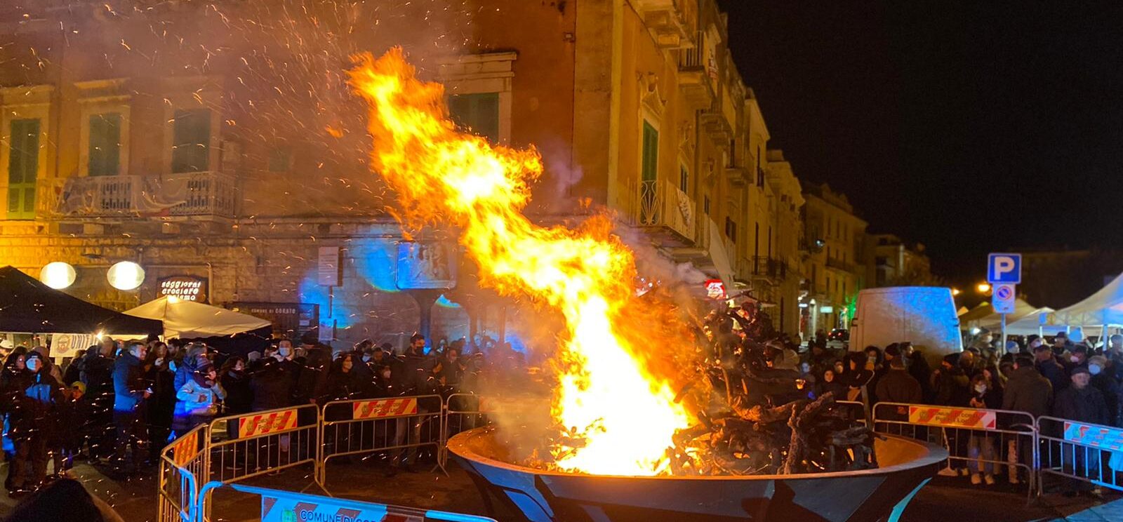 Il freddo e la pioggia, che fino al pomeriggio ha bagnato la città, non sono riusciti a fermare la realizzazione del programma previsto per l’edizione 2021 del falò di Santa Lucia, domenica 12 dicembre. La Pro Loco Quadratum, nella persona del suo presidente, Gerardo Giuseppe Strippoli, con il Comune di Corato, con il Patrocinio della Regione Puglia, del Parco Nazionale dell’Alta Murgia e dell’Unpli Puglia, è riuscita a portare tanti coratini in piazza nel tradizionale appuntamento della vigilia di Santa Lucia. Dopo la Messa celebrata in Chiesa Matrice, il Sindaco e gli organizzatori si sono spostati davanti il grande braciere, in piazza Cesare Battisti, per accendere la catasta di legno, dopo la benedizione di don Peppino Lobascio. Bancarelle e stand di prodotti tipici artigianali, lungo Corso Mazzini e in piazza hanno attratto i concittadini che, fedeli alla tradizione, si sono “sentiti comunità “, come il Sindaco ha affermato. Egli ha voluto dedicare soprattutto ai giovani questa manifestazione, affinché dopo un periodo di buio, si torni alla luce. Il presidente Strippoli ha voluto ringraziare Renato Bruno, della Pro Loco di Montemesola per la sua presenza, che ha portato in piazza la possibilità di assaporare le pettole tarantine, e gli ospiti che hanno allietato il pubblico sul palco allestito da Sonido. A scaldare i presenti sotto il palco la musica di Silvia Iannone, di Ryan 05 con il suo gruppo, e infine il gruppo folkloristico Zig Zaghini che, dal Molise, ha incantato i presenti. Trasportati nel folklore i riti del corteggiamento, della mietitura, del raccolto, della vita contadina con il ballo si vestono di vivacità e sorrisi. Gli stand di Granoro con il suo primo piatto da degustare, dell’istituto Alberghiero Tandoi con il suo PanCataldo della Pasticceria Torinese, dell’Unitalsi e del Parco dell’Alta Murgia sono state tappe affollate di una manifestazione storica che rientra tra i riti antichi del fuoco dedicato a Santa Lucia. Possa Corato essere illuminata da germi di speranza in periodi ancora difficili, mentre ci prepariamo alle feste natalizie apportatrici di desideri di gioia ed unione.